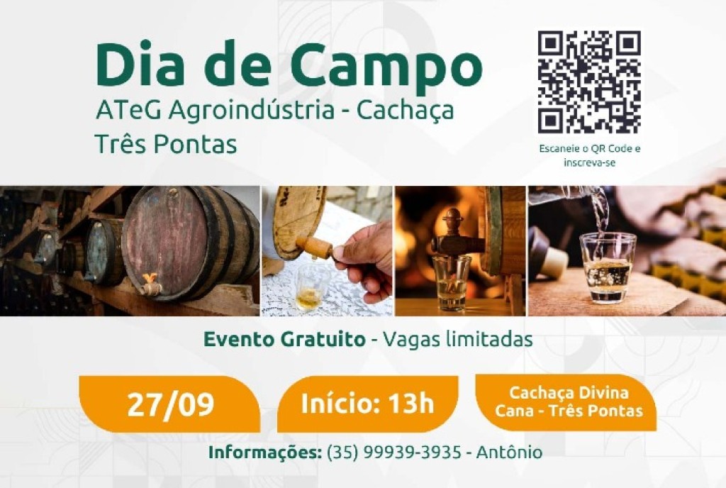 O Sistema Faemg Senar, em colaboração com o Sindicato dos Produtores Rurais de Santana da Vargem, Sebrae, Cocatrel, Universidade Federal de Lavras (Ufla) e Sicoob Credisul, realizará um Dia de Campo gratuito, dedicado à Agroindústria da Cachaça. O evento ocorrerá no município de Três Pontas, na Cachaçaria Divina Cana, com início programado para as 13h.