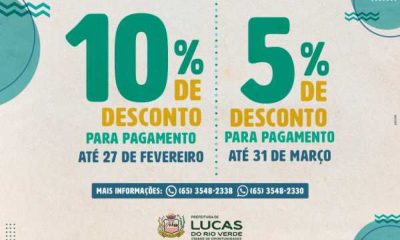 Lucas do Rio Verde6 dias agoTaxa de Alvará de Funcionamento 2026 pode ser emitida com desconto de 10% a partir de segunda-feira (12)