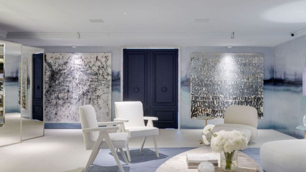 O espaço conta com três áreas interligadas em uma área de 120 m². Ao chegar, o visitante é recepcionado pelo hall espelhado com carpete azul.