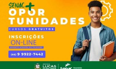 A Prefeitura de Lucas do Rio Verde, em parceria com o Senac, está com inscrições abertas para uma série de cursos gratuitos em áreas com alta...