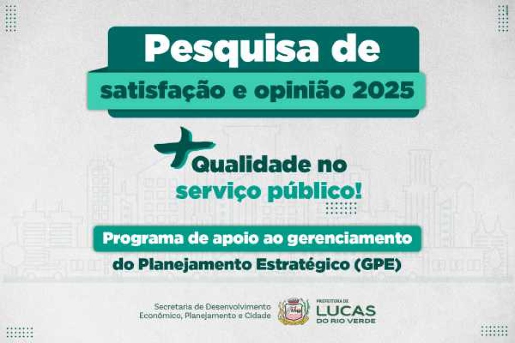 A Prefeitura de Lucas do Rio Verde reforça o convite à população para participar da pesquisa de opinião sobre os serviços públicos ofertados pela administração municipal, que entra hoje (19) em seu último dia de participação, de forma on-line.