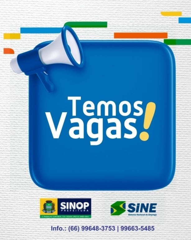 A Prefeitura de Sinop, por meio do Sistema Nacional de Emprego (Sine), realiza amanhã, quarta-feira (30), entrevistas de emprego para empresa frigorífica da cidade. As vagas são ofertadas com salário fixo, mais benefícios. Os interessados devem procurar o Sine que funciona em anexo ao Ganha Tempo, localizado na avenida das Acácias, nº 280, Jardim Botânico.