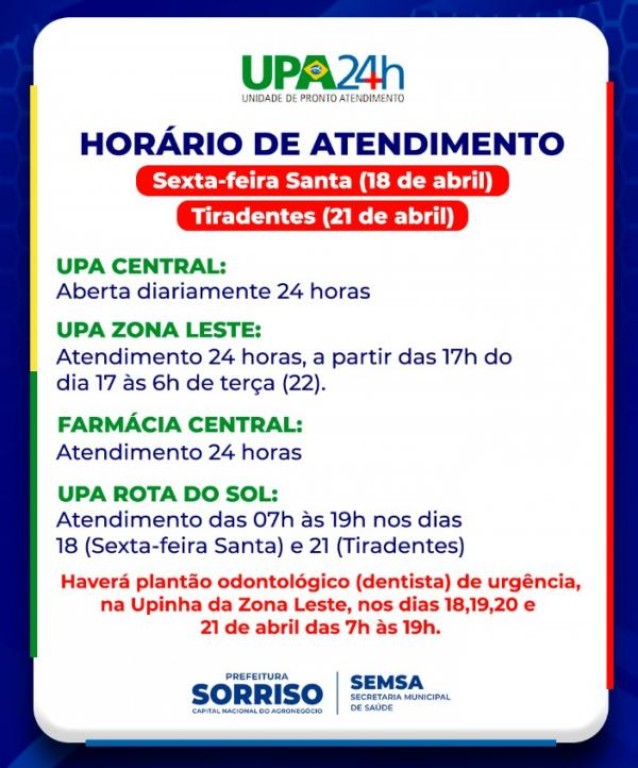 Prefeitura garante atendimento de urgência e emergência durante feriado de Páscoa