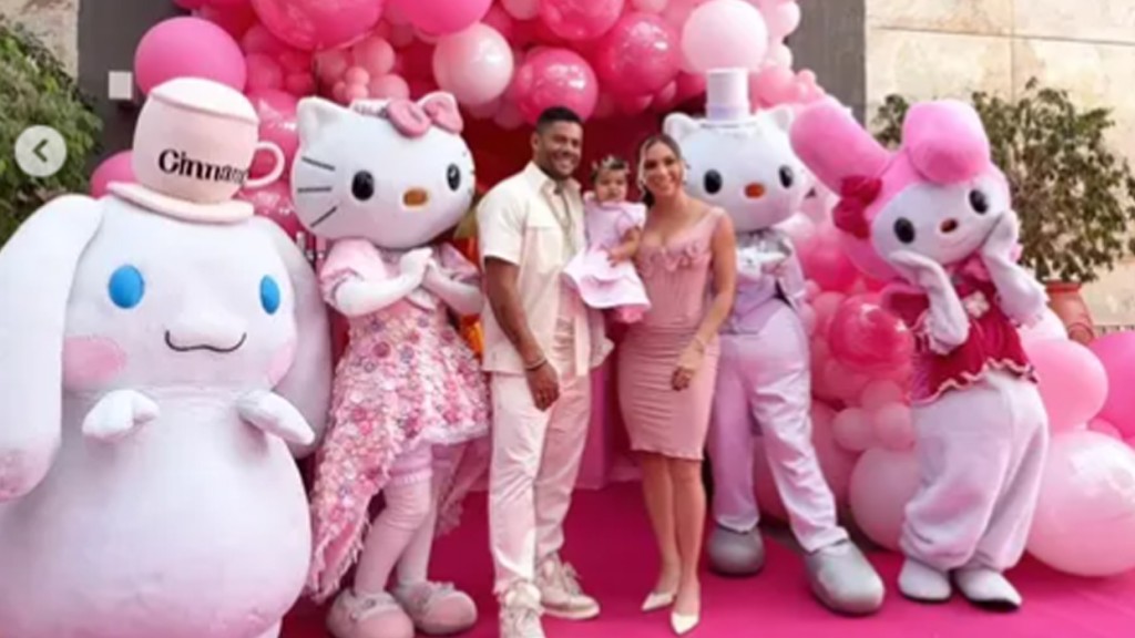 O jogador do Atlético Mineiro Hulk, de 38 anos, e a esposa, a médica e influenciadora Camila Ângelo, de 35, que nos últimos dias estavam curtindo a lua de mel em Dubai, celebraram, nesse domingo (22), o primeiro aninho da filha caçula, Aisha, com uma festança daquelas com tema da Hello Kitty, em Campina Grande, na Paraíba, terra natal do atleta.