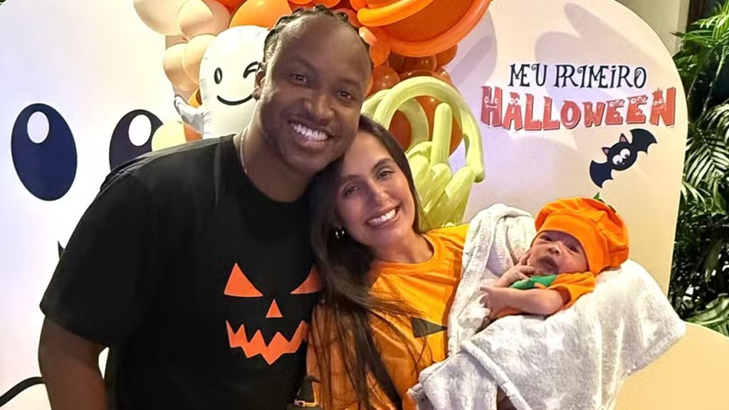 Carol Peixinho e Thiaguinho celebram primeiro mês do filho: ‘Halloween’