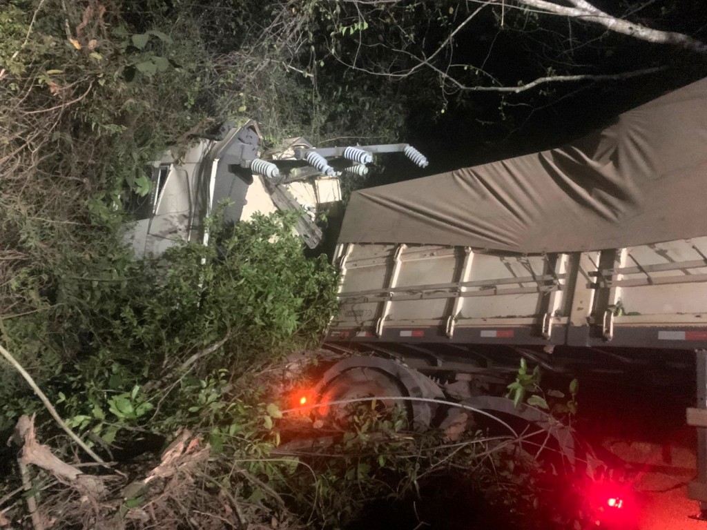 Bombeiros combatem incêndio em vegetação causado por colisão de carreta