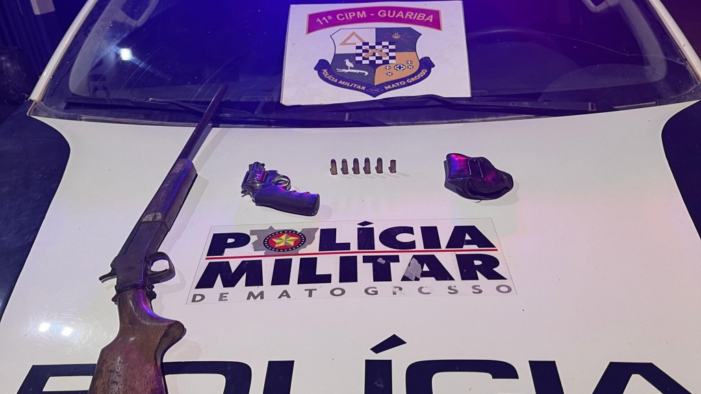 Um homem de 33 anos foi preso pela Polícia Militar pelo crime de porte ilegal de arma de fogo, na noite desta quarta-feira (06.11), no distrito de Guariba, em Colniza. Na ação, a PM apreendeu uma espingarda, um revólver e munições para o armamento.