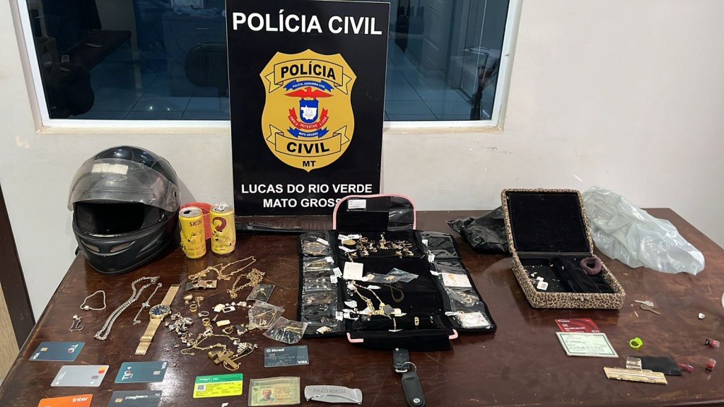 Policiais civis apreendem objetos levados em roubo a borracharia e arma usada no crime