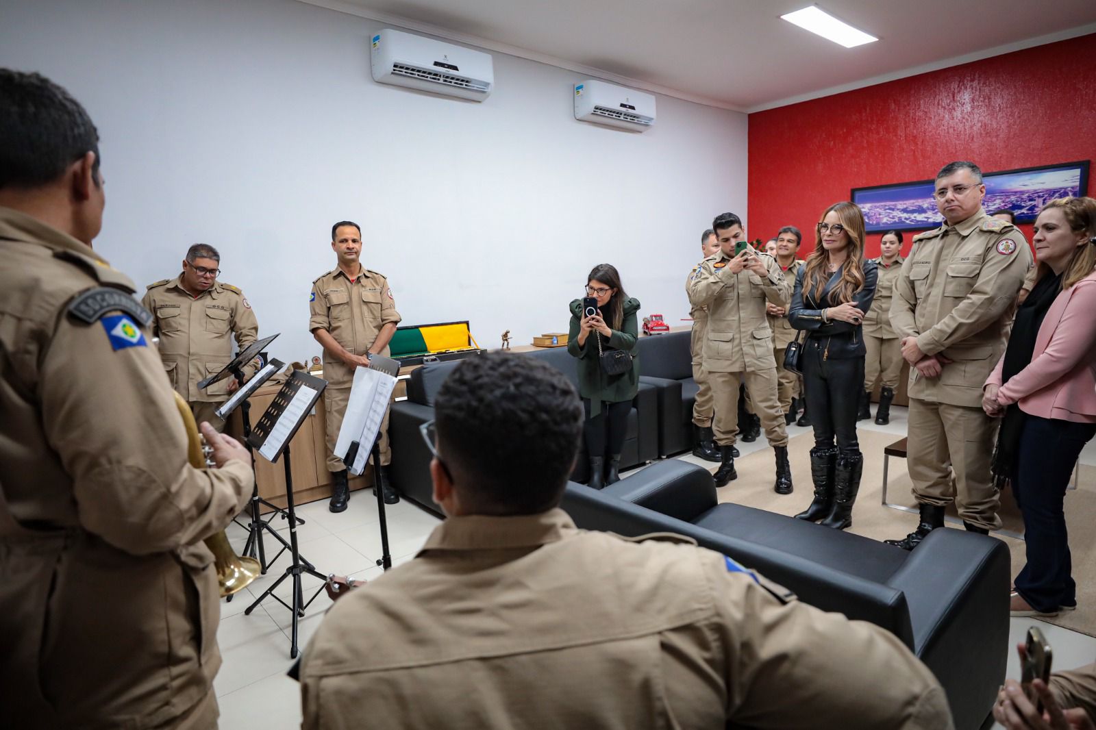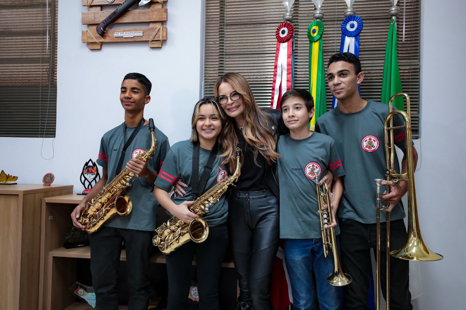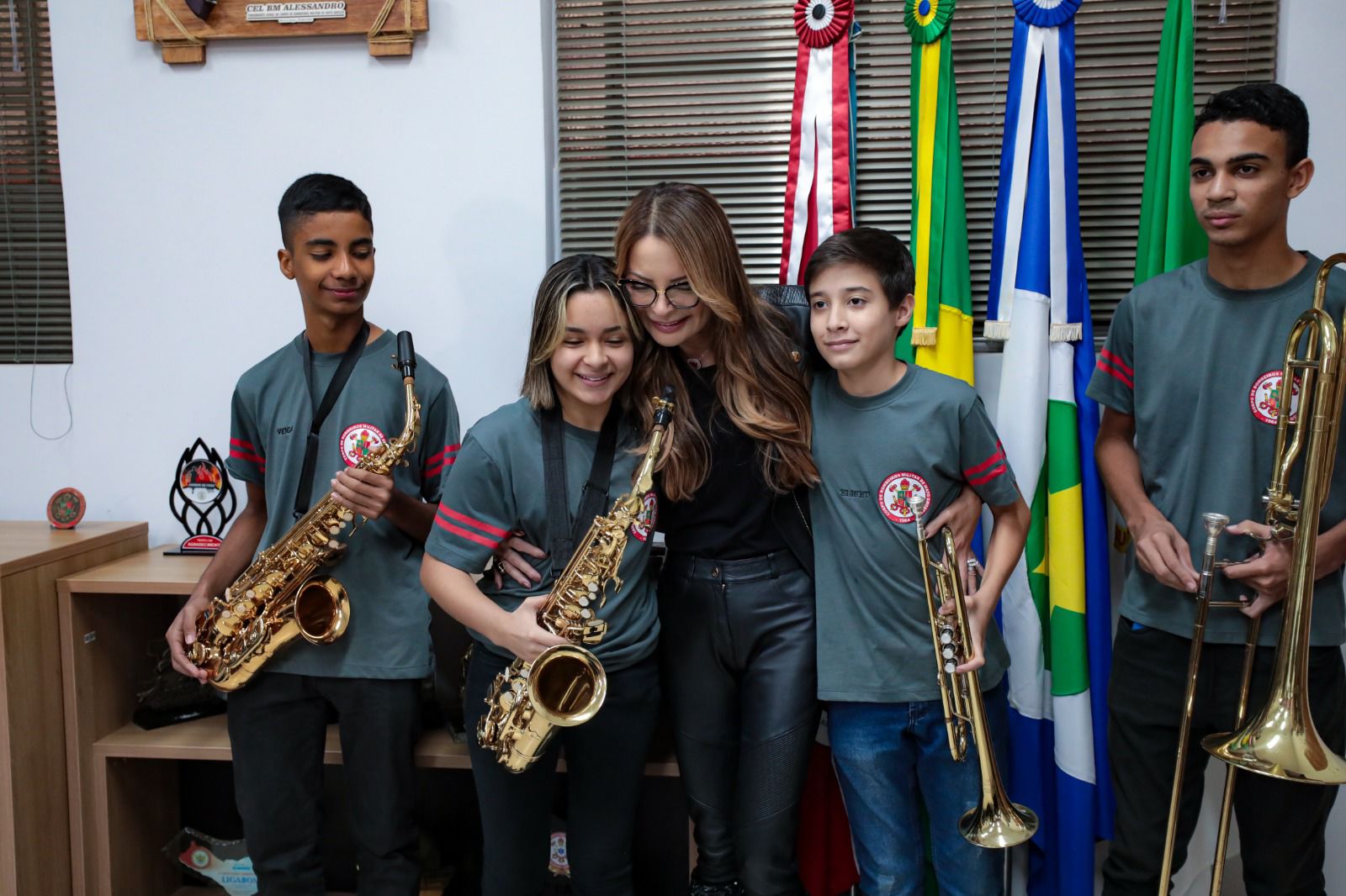 Primeira-dama de MT recebe homenagens e reforça apoio ao projeto Musicalizar em visita comando do Corpo de Bombeiros de MT
