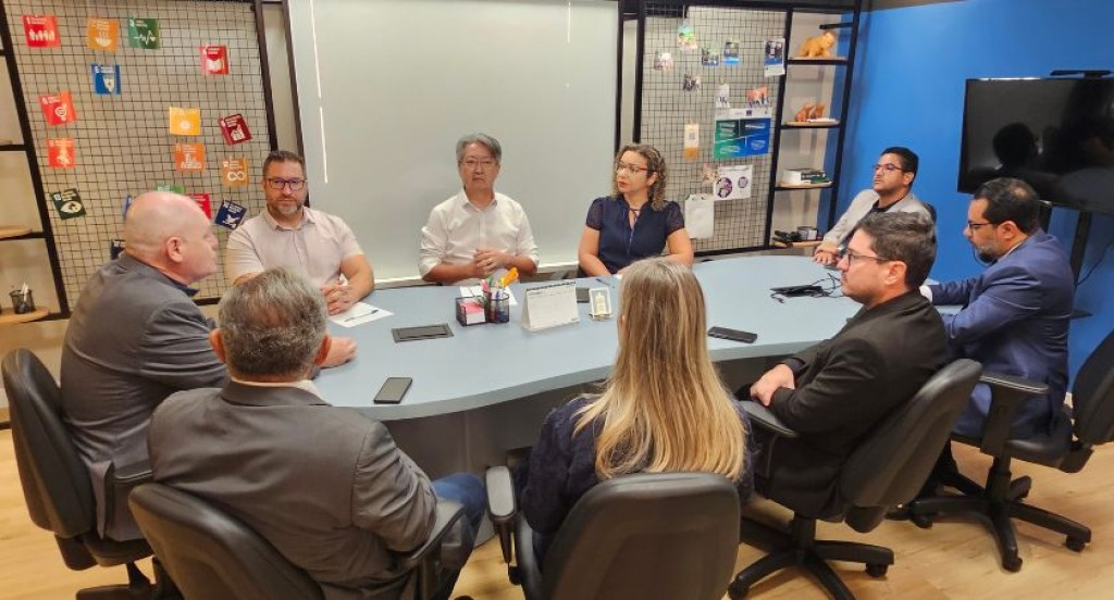 #PraTodosVerem: A imagem principal mostra um grupo de pessoas reunidas em torno de uma mesa de reuniões. Elas estão em discussão, em ambiente formal, sugerindo um encontro institucional ou de trabalho colaborativo. Ao final do texto, tem mais imagens da reunião, em diferentes ângulos.