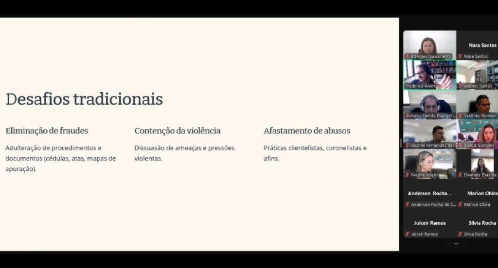 Ele falou sobre os desafios tradicionais da Justiça Eleitorais, que se resumem em: eliminação de fraudes (adulteração de procedimentos e documentos); contenção da violência (dissuasão de ameaças e pressões violentas); e afastamento de abusos (práticas clientelistas, coronelistas e afins). Também abordou os desafios agregados, resultantes do uso de tecnologia, como, por exemplo: equidade na programação algorítmica e na moderação de conteúdos (isonomia na configuração dos fluxos da conversação política); transparência e legalidade no uso de dados pessoais (afastamento de abusos no tratamento de informações psicométricas); neutralidade política das tecnologias disruptivas (eliminação do viés político-partidário na governança e na autorregulação das plataformas de internet).