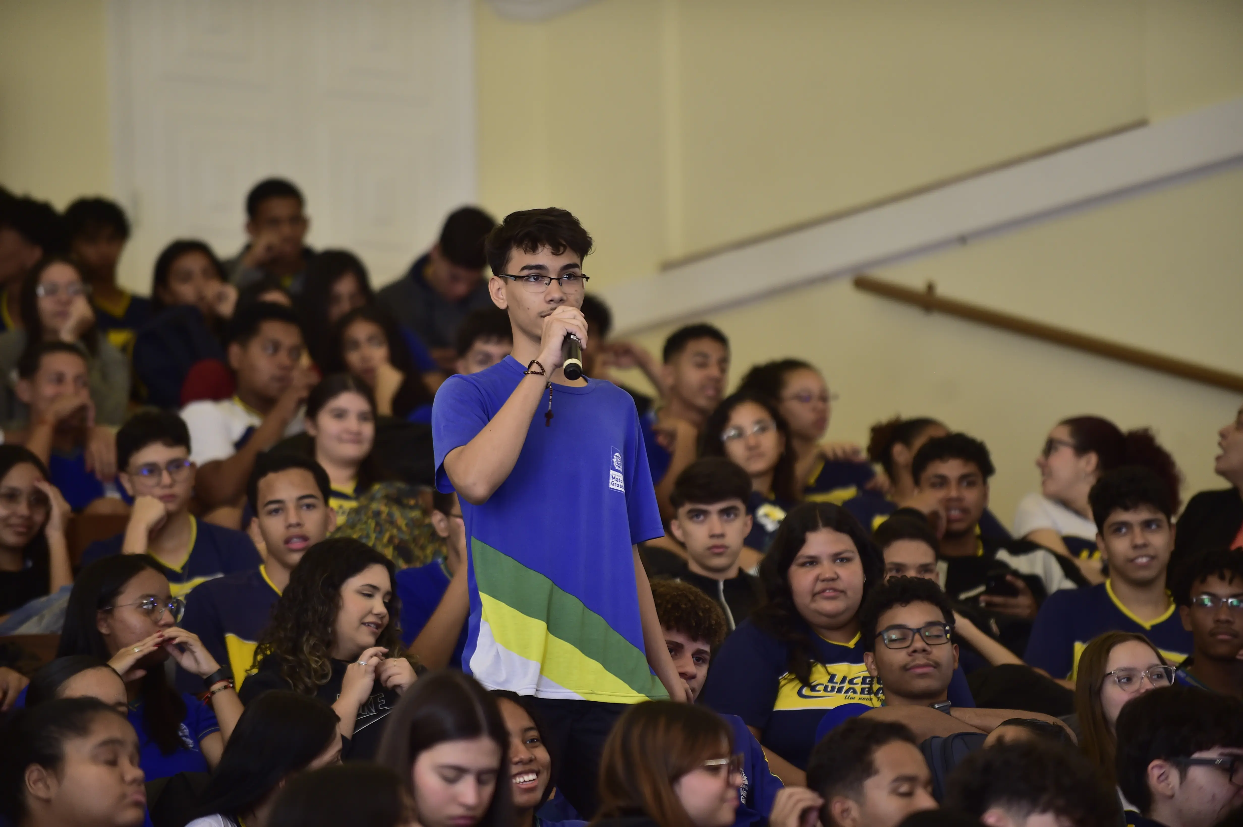 Vinicius Couto, coordenador técnico do Programa Justiça Plural, no qual está inserido o projeto Diálogos com as Juventudes, explica que a ideia partiu do presidente do CNJ. “Foi um pedido expresso do próprio ministro Barroso no sentido de aproximar as juventudes e a magistratura. Então vamos fazer 10 projetos-piloto, passando por 10 capitais. E a ideia é que, a partir disso, a gente crie uma metodologia e reaplique para o Brasil como um todo, nos tribunais como um todo. Também foi um pedido do ministro que iniciasse em Cuiabá e estamos muito felizes pela escolha dessa escola, que é linda, está muito cheia, é interessante”.