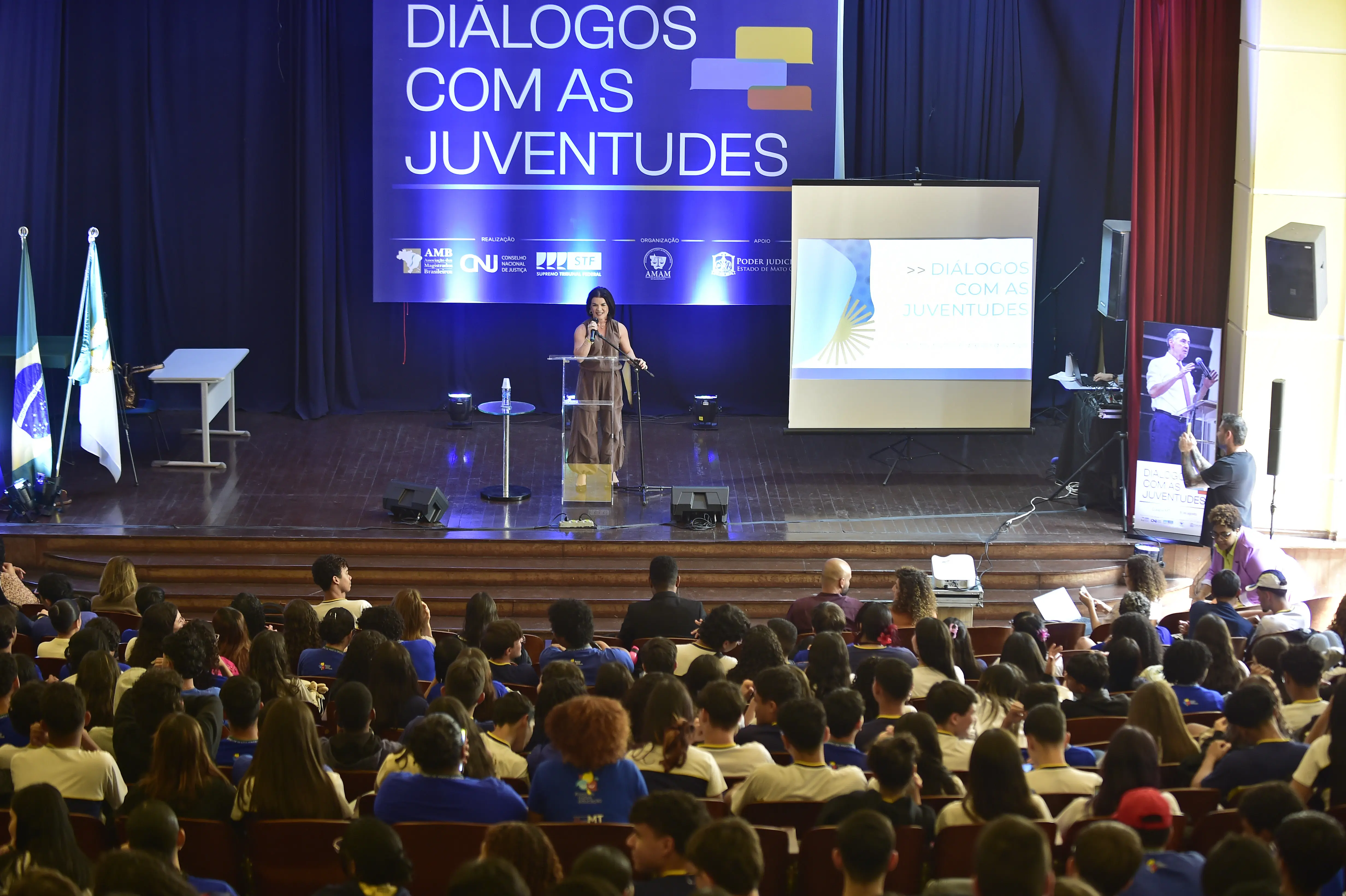 “Ontem o ministro esteve aqui conosco, na escola Liceu Cuiabano, e anunciou que o projeto-piloto Diálogos com as Juventudes seria iniciado em Cuiabá. Então, hoje é o dia de iniciar esse trabalho e eu estou muito feliz, empolgada, animada em ver novamente 450 alunos nesse auditório, onde nós vamos interagir e passar noções de Direito, cidadania e outros temas”, disse.