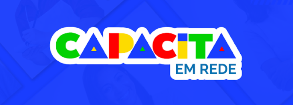 #Paratodosverem. Esta matéria possui recursos de texto alternativo para promover a inclusão de pessoas com deficiência visual. Descrição da imagem: logótipo do projeto Capacita em Rede, nas cores verde, azul, vermelho e amarelo em um fundo azul.