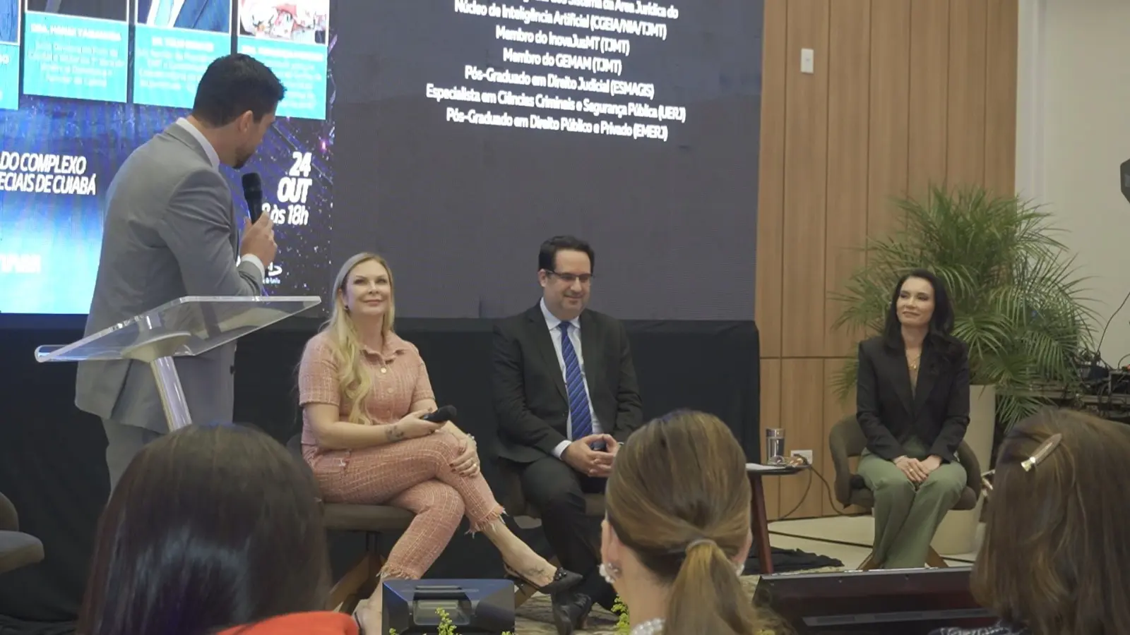 Em sua palestra, o magistrado – que é cooperado do Núcleo de Justiça Digital de Execução Fiscal Estadual do TJMT e membro do Laboratório de Inovação do Tribunal de Justiça do Estado (InovaJus-MT) – propôs uma discussão sobre o tema “Justiça na Era Digital: Caminhos para um sistema moderno e inclusivo”. A mesa de debates teve como presidente a promotora de Justiça Fernanda Pawelec Vasconcelos, e como mediadores o juiz Túlio Duailibi Alves Souza e a magistrada Hanae Yamamura.